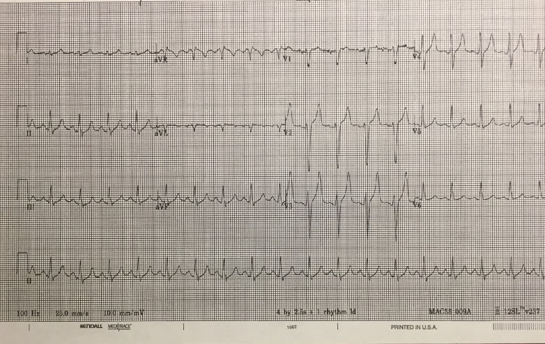 X-Ray abdomen came out to be normal. You next do an ECG to evaluate for palpitation and abdominal pain.